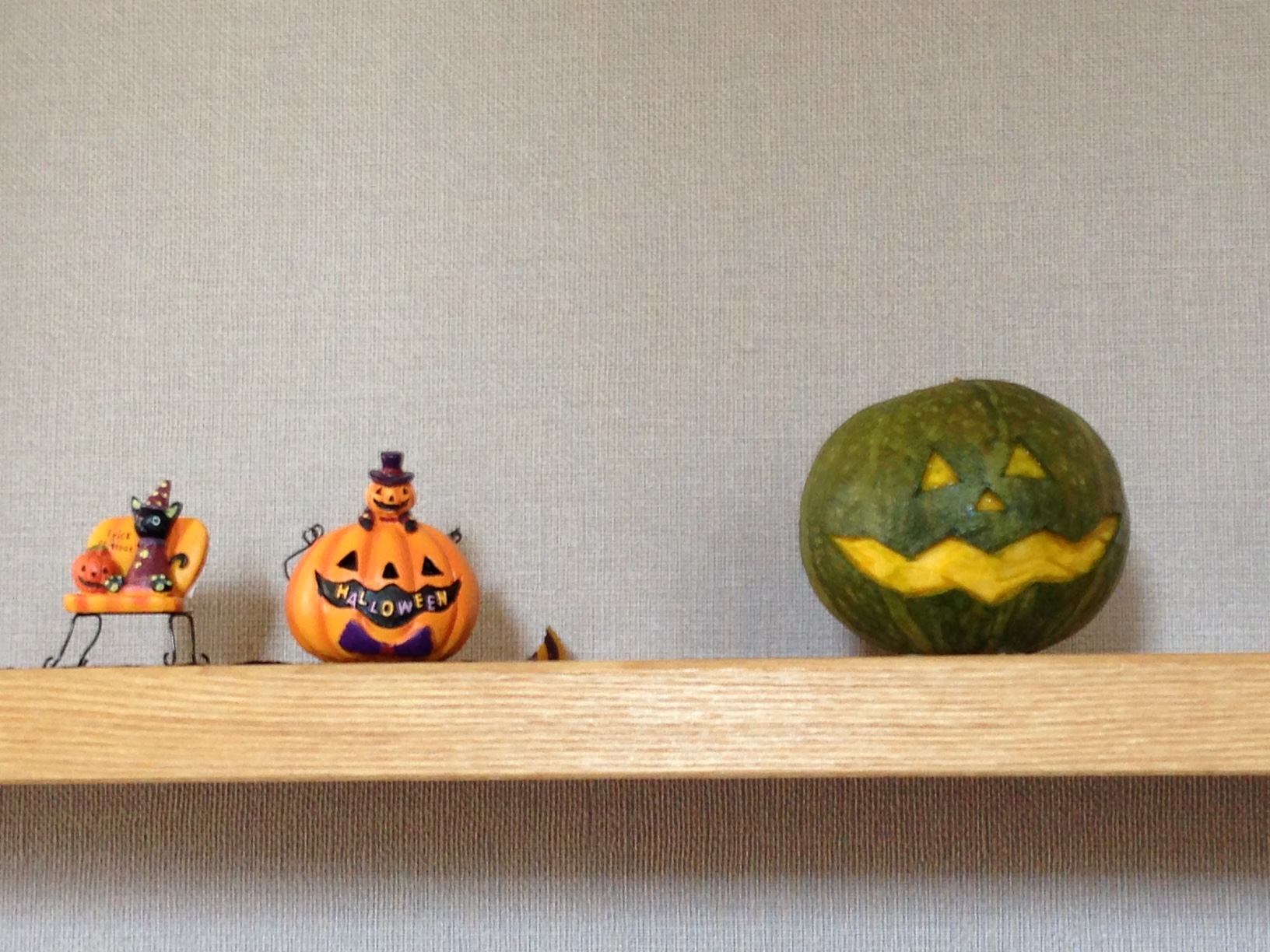 画像は、お庭で採れたかぼちゃを社長がアレンジ。そのままでも可愛いけどもっと可愛くなりました(^O^)